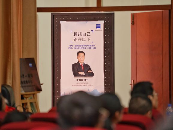 卡尔蔡司中国区副总裁张育薪博士出席讲话并做“超越自己,路在脚下”的励志报告。张副总裁的讲话简短回顾了双方合作的历程以及对未来深度合作的展望。报告中,张副总裁分享了自己的成长历程,通过自身经历勉励青年学子不断超越自我,最后通过在蔡司的工作经历鼓励大家不断尝试、做最好的自己。整场报告富有启迪、充满趣味,师生们积极提问,现场气氛热烈。