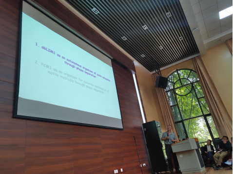 朱学良研究员致力于细胞周期与运动的相关研究。团队利用现代生物学的多种研究技术和手段,结合细胞、小鼠等系统,对细胞运动的结构基础和调节机理,以及细胞运动与疾病等的相互关系进行了深入的研究。本次报告中,朱学良团队详细解析了abLIM1蛋白通过相分离调控微丝骨架成核和组织的分子细胞机制,在另一项研究中发现PCM1蛋白通过相分离形成的纤维状颗粒物对多纤毛组装起重要调控作用。