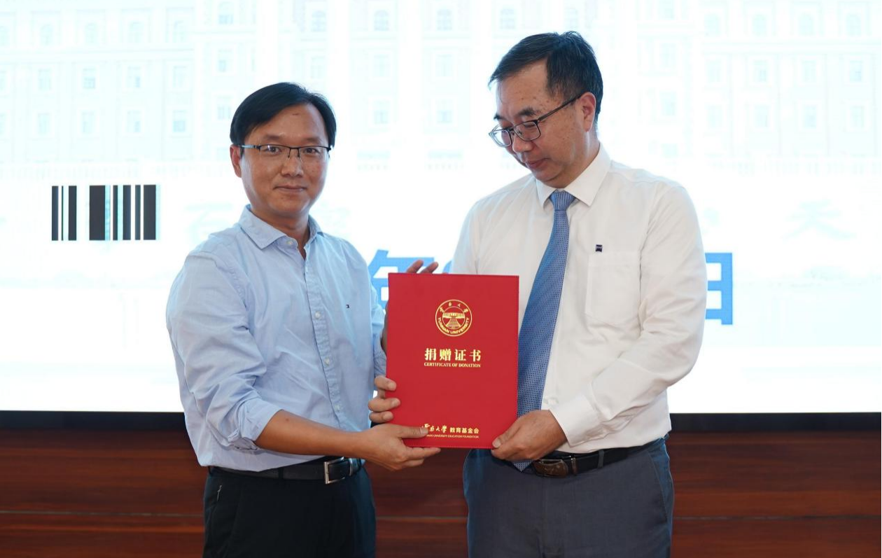 胡剑锋秘书长代表best365官网登录入口教育基金会向蔡司公司颁发捐赠证书。