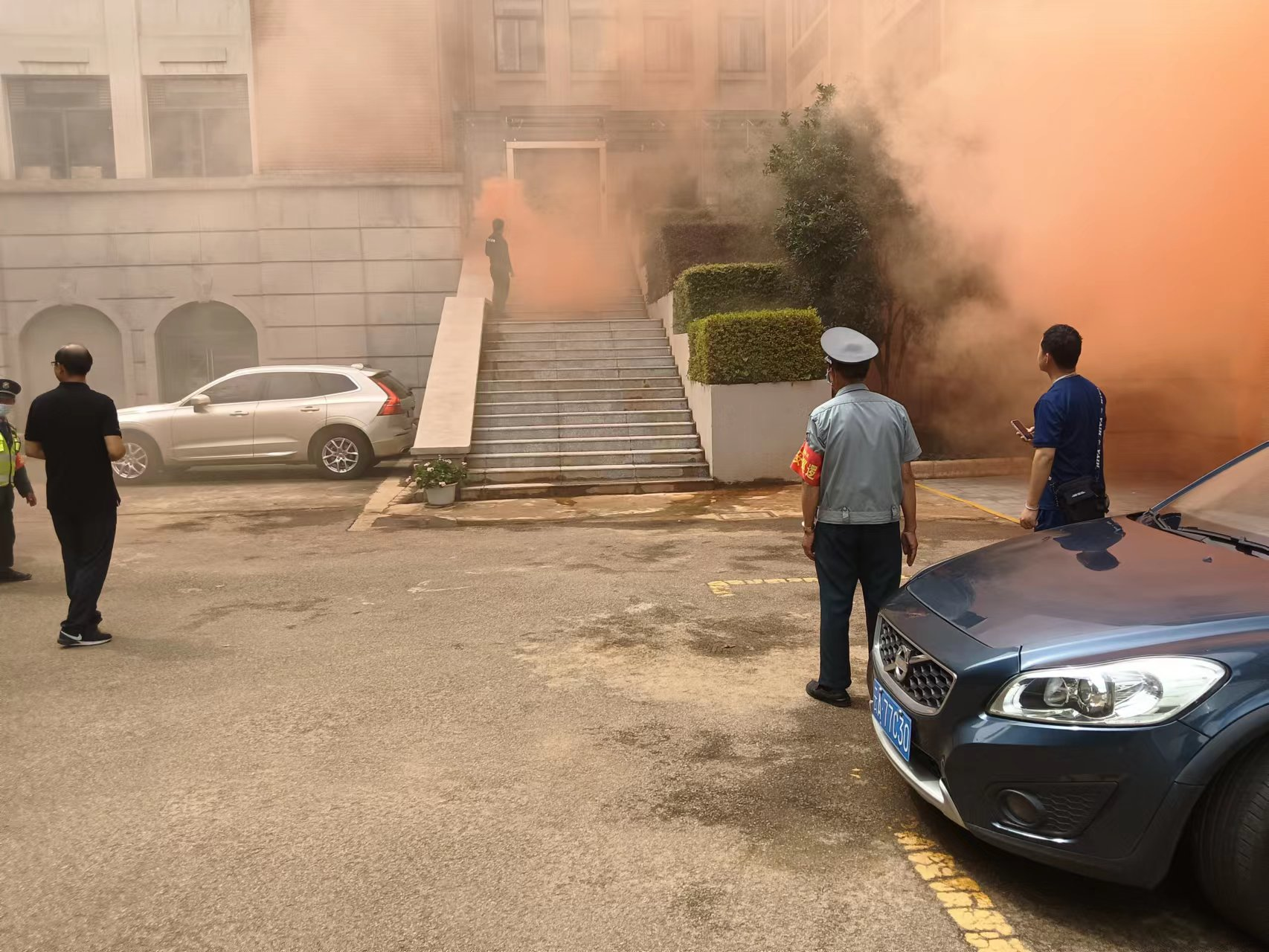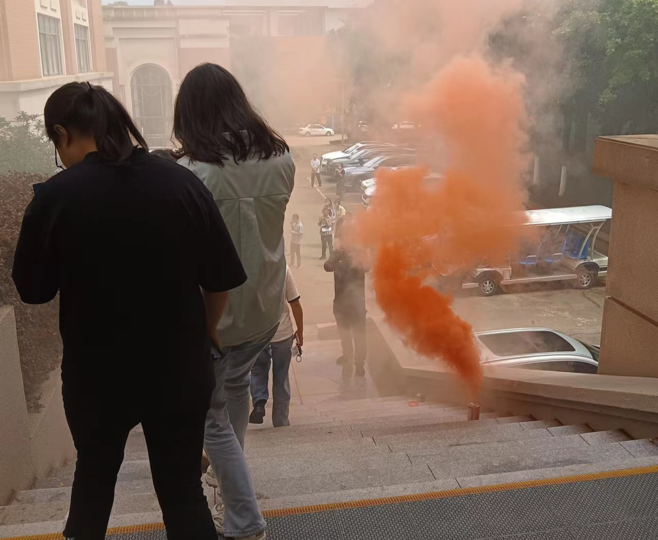 下午三时许,疏散演练正式开始,随着警铃响起,按照演习预案,疏散人员指挥楼内师生迅速而有序地从一栋三楼东北两向的疏散通道撤离,在撤离过程中,及时关闭楼层防烟门,有效阻断了烟雾弥漫和扩散。